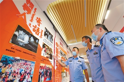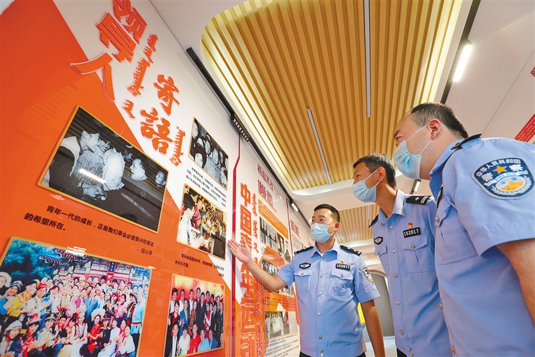 近日,珠恩嘎达布其出入境边防检查站组织青年民警赴锡林郭勒盟东乌珠穆沁旗示范性“青年爱里”阵地进行实地观摩,引导民警在学习青年运动史的过程中汲取智慧和力量,传承红色基因、赓续红色血脉,激励民警不忘初心、守边卫国。本报记者 安寅东 摄