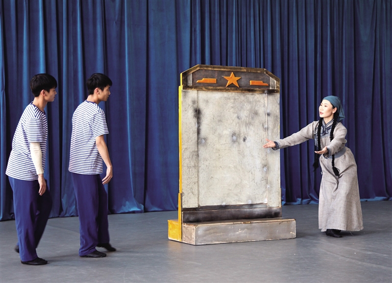 在训练大厅,演员正在排练着新创作的舞蹈《爱无声》。该作品是苏尼特右旗乌兰牧骑今年新创作的节目,演绎了草原母亲抚育上海孤儿的感人故事。