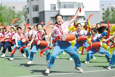 6月17日,包头市昆都仑区包钢第二十五小学的学生们正在练习腰鼓。近年来,我区中小学积极推行特色教育项目进校园工作 ,让学生传承弘扬中华优秀传统文化。
