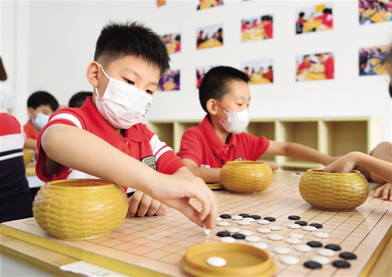 6月20日,呼和浩特市建华学校的学生们正在进行围棋比赛。当日,呼和浩特市新城区“围棋进校园文化润童心”活动启动。据悉,呼和浩特市建华学校、新城区呼哈路小学等14所学校成为首批围棋进校园试点学校。 本报记者 孟和朝鲁 摄