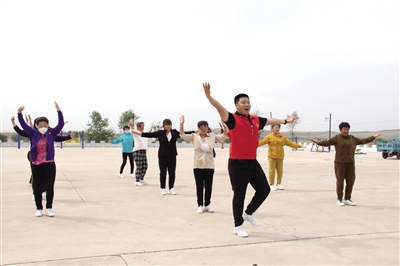 首批学员20余人,多是赋闲在家的农牧民妇女,大家学习劲头十足。为了尽早学会健身操,学员们白天干农活,晚上温习动作,有的学员还把练习的视频发给海老师指点。渐渐地,“文艺导师”和群众的关系日益密切。“以前跟着网上视频学习,跟不上、学不会,现在有专业老师按动作分解教学,不到3天就学会了一套健身操。”巴仁布敦化嘎查农牧民温玉荣高兴地说。授课间隙,海丰瑞还会唠唠国家通用语言文字法律法规等党的理论政策。农牧民都说:“海老师不仅教我们健身操,还抽空给我们讲解党的理论政策,真是个全能老师!”
