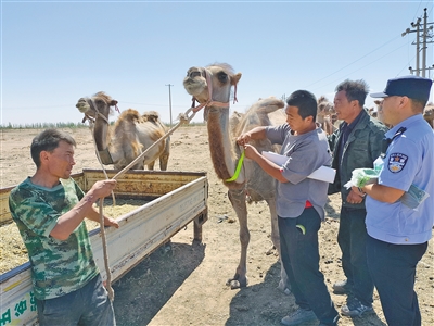 近日,阿拉善盟阿右旗公安局贡湖都格派出所民警深入牧户走访,了解社情民意,开展法治宣传,维护辖区治安秩序。本报记者 陈春艳 摄