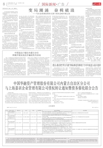 中国华融资产管理股份有限公司内蒙古自治区分公司 与上海嘉训企业管理有限公司债权转让通知暨债务催收联合公告