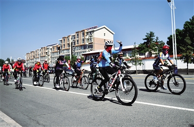 6月23日,呼和浩特市骑行爱好者正在参加骑游活动。当日,由自治区社会体育服务中心主办的“永远跟党走 同心向未来——国际奥林匹克日自行车骑游活动”在内蒙古自治区赛马场举行,来自呼和浩特市300名骑行爱好者参加此次活动,骑行线路全长22公里。本报记者 孟和朝鲁 柴思源 摄