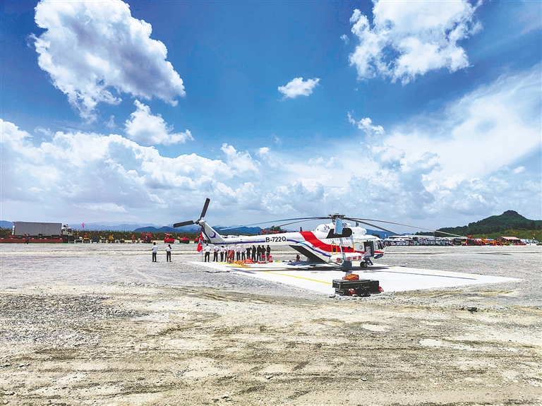 6月28日,在贵州省遵义市汇川区,直升机参与“应急黔行·2022”贵州综合应急演练。当日,“应急黔行·2022”贵州综合应急演练在贵州遵义举行。本次演练采取实战演练与桌面推演相结合、专项演练与综合指挥相结合方式开展,通过模拟应对处置多灾并发的综合性巨灾,全面检验指挥协调机制和快速响应工作机制运行效能,切实提高各类灾害事故抢险救援实战能力。 新华社发