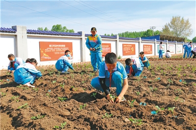 在新林中心校劳动实践基地,学生们在老师和家长的指导下,第一次拿起了农具,学习打垄、栽苗、覆土……明媚的阳光下,校园呈现出一片繁忙的农耕景象。