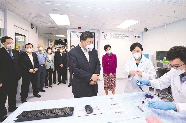 习近平来到香港神经退行性疾病中心,听取中心研究团队在阿尔茨海默病诊断治疗等方面取得的成绩,■下转第2版 ■上接第1版 勉励大家再接再厉,在攻坚克难中追求卓越,创造更多引领世界潮流的科技成果。