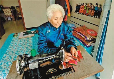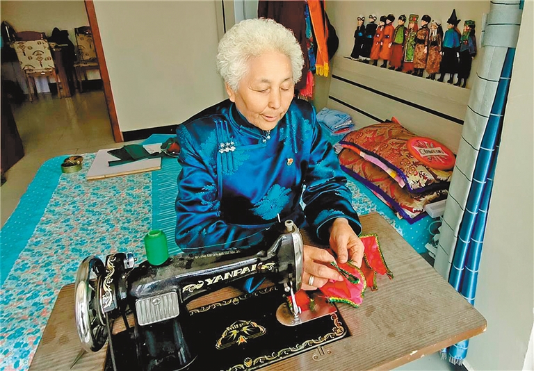 年轻时的贡生吉德十分擅长针线活,但一边在牧区放牧,同时还担任嘎查妇联主任,十分繁忙,一直没有时间做自己喜欢的手工缝纫。如今,年龄大了,进城养老了,一下有了闲暇时间,她重拾兴趣,每天手工缝制“娃娃”服饰,既有乐趣,还能增加收入。如今,老人制作的“娃娃”服饰不仅在当地小有名气,更是通过网络远销到南方特色旅游景区,收入十分可观。