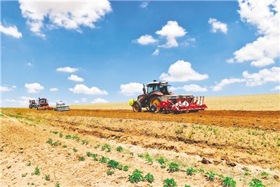7月1日,呼和浩特市武川县天力木图村村民正在驾驶大型机械翻地、抢播燕麦。入夏以来,呼和浩特地区降水偏少,高温天气持续,武川县出现旱情。近日几场降雨极大地缓解了旱情,农民抓住有利时机抢播燕麦、莜麦等作物。