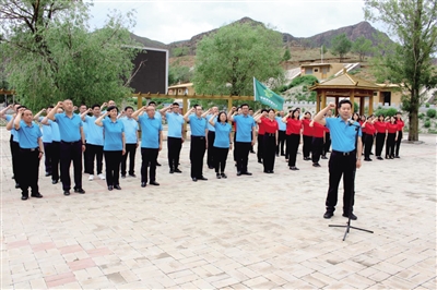 当日,在大青山抗日游击根据地司令部旧址红旗广场,伴随着优美的旋律,全体党员干部手中挥舞着鲜红的党旗、国旗,齐声高唱《唱支山歌给党听》,整齐的队伍组成了一道亮丽的风景线,激情奋进的歌声在空中飘荡。随后,在自治区退役军人事务厅党组书记、厅长常志刚的带领下,党员干部坚定地举起右手,再一次重温入党誓词,“我志愿加入中国共产党,拥护党的纲领,遵守党的章程……”铿锵有力的誓言,宣示着坚定不移的理想信念和对党的无限忠诚。