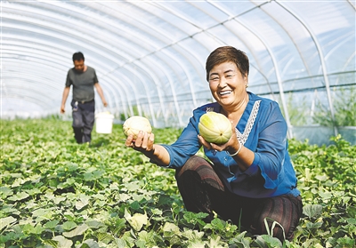 近日,巴彦淖尔市乌拉特前旗乌拉山镇联光村香瓜大丰收,种植户闫争气脸上洋溢着丰收的喜悦。据了解,该村因地制宜,选择适合本地生长、经济效益高、见效周期短的香瓜进行种植,发展特色种植产业,创建“缸房脆”品牌,每亩纯收入1万元以上,通过种植香瓜带领农民增收致富。本报记者 孟和朝鲁 摄