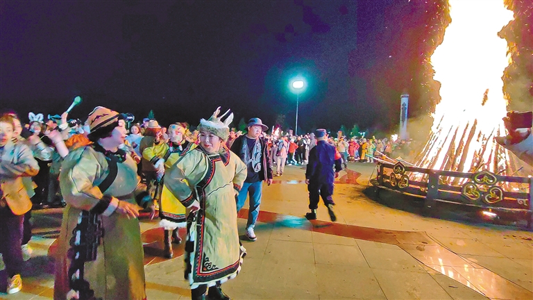 当日,鄂伦春自治旗各族群众和各界嘉宾、各地游客在甘河河畔开展了系列民俗体验活动,在库图尔其广场举办了文艺演出,点燃了吉祥篝火。