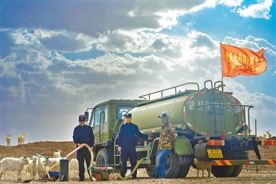 近日,受持续高温影响,阿拉善盟北部地区发生旱情,部分地区面临人畜饮水困难。阿拉善边境管理支队苏宏图边境派出所迅速行动,组织该所党员先锋服务车为辖区牧民免费送水80余吨,以解群众燃眉之急。