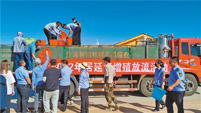 日前,阿拉善盟额济纳旗举行2022年居延海渔业资源增殖放流活动,现场共放流189万尾鱼苗。