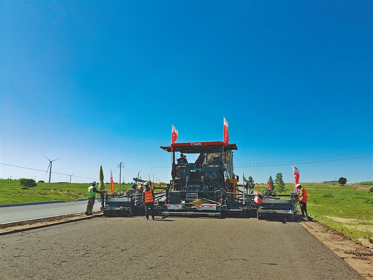 “该路段采用一级公路标准建设,长度为12.6公里,设计速度为每小时80公里,路面宽度为20米,采用双幅四车道,预计在8月15日实现全线主体贯通。”中交三公局草乌高速二标段一工区经理郝金凯说,截至目前,路线右幅下面层已完成,左幅下面层目前已完成9.6公里。9月30日完成全部施工任务。