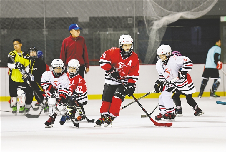 7月11日,小朋友们正在进行冰球训练。当日,由自治区体育局主办的“爱冰雪·一起向未来”自治区青少年冰雪冬令营在呼和浩特市体育中心开营。冬令营首期的冰球营为期5天,50多名热爱冰雪运动的小朋友将在专业教练的带领下,体验兼具趣味性和专业性的营地课程,享受冰雪乐趣。