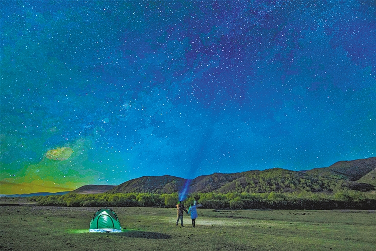 阿鲁科尔沁旗巴彦温都尔苏木,天文爱好者欣赏星空。文/图 姚晓鑫