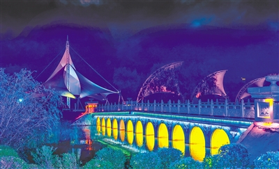 乌兰浩特市洮儿河生态休闲公园,垂柳依依,水草妖娆,亭若鼓帆,彩桥如幻,美轮美奂。