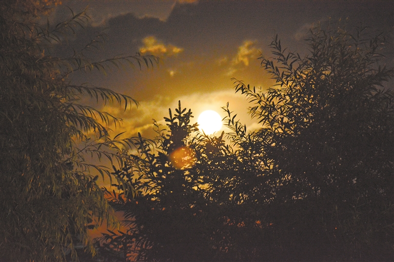 三五之夜,乌云裂隙,皓月当空,柳丝弄影,如诗如画。文/图 杨文瑜