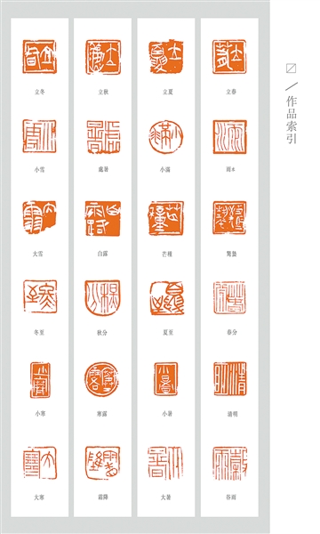 仔细端详艺如乐图创作的二十四节气印章,印面设计各不相同、别致精巧。