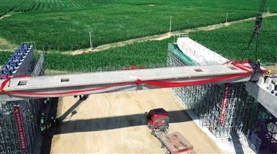 7月16日,S43呼和浩特新机场高速公路全线首跨预制梁成功完成架设。S43呼和浩特机场高速公路项目路线主线全长29.422公里,起点位于呼和浩特市南湖湿地公园西路与乌海大街交汇处乌海大街南侧,主线采用双向八车道高速公路标准,设计速度120km/h,路基宽度43.0m,全线设三环路、什不更、沙尔沁、机场4处互通立交,预计于2024年底建设完成。本报记者 王晓博 摄