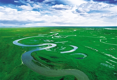 仲夏骄阳下,古老的克鲁伦河在呼伦贝尔大草原上静静流淌。盛夏的呼伦贝尔大草原水草丰美,一片绿意,蜿蜒的克鲁伦河美景吸引了四方宾客。河流两岸分布着大面积的河滩、湿地与沼泽,是呼伦贝尔大草原上优良的天然牧场。 本报记者 马建荃 摄