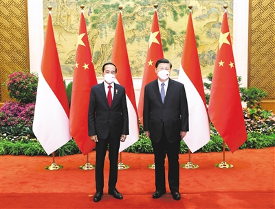 习近平指出,当前世界之变正以前所未有的方式展开,中印尼要同舟共济,展现发展中大国责任担当,践行真正的多边主义,坚持开放的区域主义,为推进全球治理提供东方智慧,贡献亚洲力量。中方全力支持印尼主持召开二十国集团领导人巴厘岛峰会,愿同印尼加强协调配合,确保峰会取得圆满成功。中方也将全力支持印尼当好明年东盟轮值主席国,愿同东盟加强团结协作,聚焦“五大家园”建设,不断释放中国东盟全面战略伙伴关系新动能。中方欢迎印尼继续积极参与“金砖+”合作,赞赏印尼支持和重视全球发展倡议和全球安全倡议,愿同印尼就此加强沟通合作。