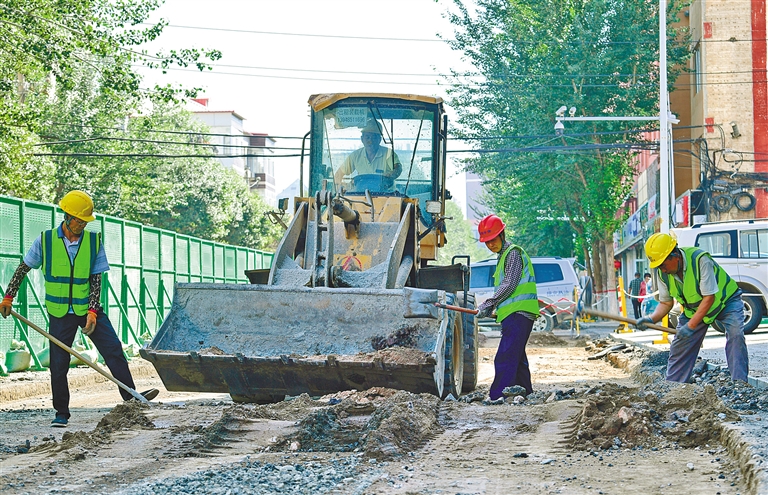 为进一步提升道路通行质量,切实改善居民出行体验,呼和浩特市玉泉区共对石羊桥路、五十家街、三里营街等30条道路进行改造,从7月10号开始,各道路陆续开始施工,预计8月底全部完工。图为工人们正在玉泉区五塔寺东街进行道路基础加固改造。