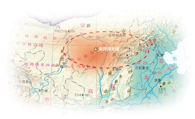 朱开沟文化的分布地域在以鄂尔多斯地区为中心的内蒙古中南部地区,向南分布至吕梁山至晋中以北和陕北地区,向北到阴山山脉脚下,东界可至张家口地区,往西至贺兰山东麓。