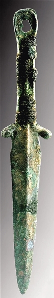 朱开沟遗址出土的青铜器种类丰富,有铜戈、铜刀、铜短剑等。凹槽青铜短剑是迄今为止我国出土最早的一把铜剑,堪称“中国第一剑”。