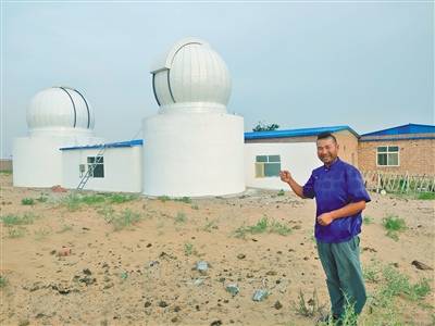 此后,巴依尔经人引荐认识了湖南省天文协会会长谭巍老师,并把自己的想法告诉给了他。谭巍通过几次实地考察后,对这里建天文台的条件非常满意。巴依尔说,星空是沙漠中非常好的一种资源,今年4月他和湖南天文协会合作,各投资50万元,在他家里建起了两座天文台。一台用于科研,可在湖南远程操作,主要用来拍摄照片,进行科学研究;一台用于天文观测普及天文科普知识。“我们还把这座建在沙漠中的天文台命名为星沙天文台,湖南省天文协会还会经常安排老师来这里给孩子们讲课。”巴依尔说。