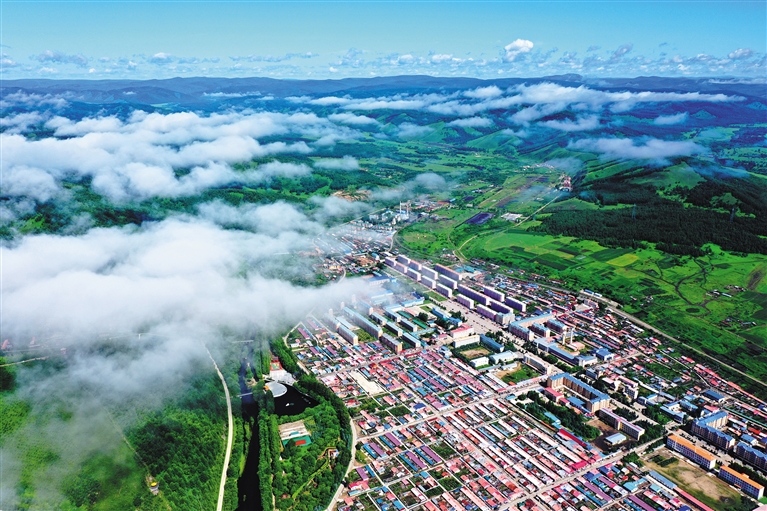 不负时代之召,不负人民之望,不负青山之托。跨度70载烙印当年,内蒙古大兴安岭用万顷碧波支援了国家经济发展建设,创造了万千栋梁出林海的奇迹。三代林业人艰苦奋斗,从林木砍伐到停伐转型,成就了护林植绿筑脊梁的伟业。如今,内蒙古大兴安岭依旧用奔涌的绿色向世人展示她完美的容颜,长木苍翠,白云横飘,莽茫林海,云卷云消,林果飘香……从“增绿”到“守绿”,一项项务实有力的举措落地生根,一场场大规模的生态建设持续推进,一幅幅生动的绿色画卷正在徐徐展开。伟大时代呼唤伟大精神,崇高事业更需接续奋斗。