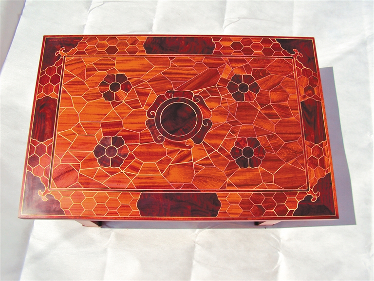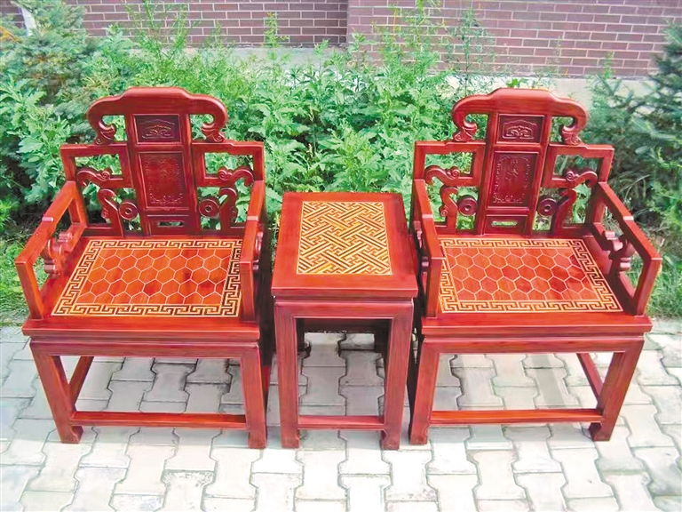 经过几年的打拼,孟凡中的好手艺很快就传开了。但是,因为当时不流行古典家具,没有销路,孟凡中就将木嵌技艺应用在了现代家具上,结果赔得很惨。