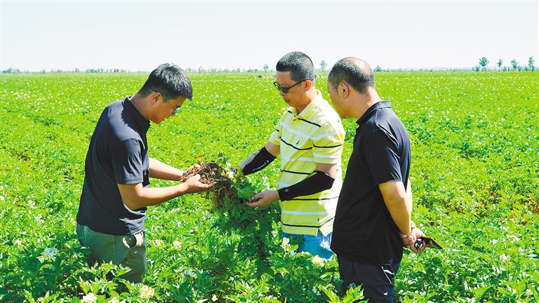 火车跑得快,全靠车头带。从贫困到富裕,人才引进功不可没。土格木村的青年李亚平,早年外出务工,一直从事马铃薯种植管理与技术服务工作,当他听闻四子王旗大力实施“引凤还巢工程”和人才驱动战略,加上对乡村广阔发展前景的认识,毅然辞去高薪工作,返乡创立了宏宇马铃薯种植专业合作社。“合作社从最初成立,到科技和经营模式创新,都得到旗委和旗政府的大力支持,”李亚平感激不已,“如今,合作社直接带动周边农户206户种植马铃薯2万多亩,辐射周边5万多亩马铃薯种植区域,提供季节性务工岗位630个,固定用工30人,使农户人均年增收3000元以上。”