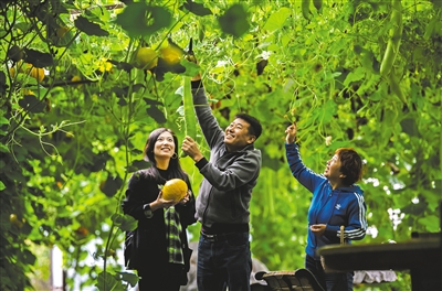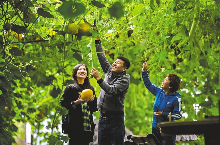 8月8日,游客在呼伦贝尔市额尔古纳蒙兀室韦苏木居民徐霞的果蔬种植园采摘。在美丽乡村建设中,额尔古纳市打造了一批小而精、小而特、小而美的旅游乡镇、精品乡村,并因地制宜设计不同的旅游产品主题、提供不同的旅游服务内容。从旅游入手,以景观先行,打造民富、业兴的新农村。