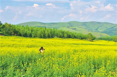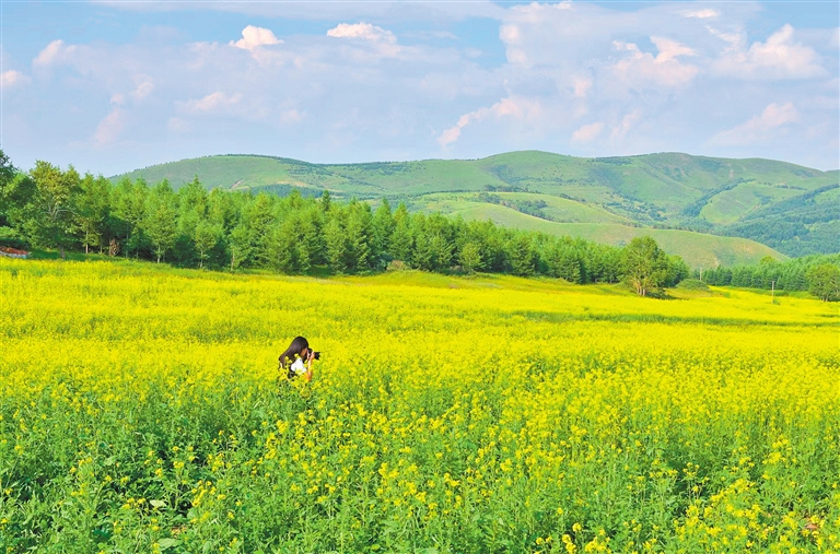 凉城县鸿茅镇白艮厂汉村,一位摄影爱好者在油菜花深处拍摄图片。 文/图 范效孔
