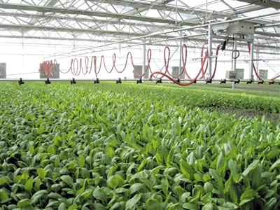 设施农业提档升级,创新突破。与全国唯一的设施农业院士李天来合作,推广国内领先的组装式内储热高效节能温室,实现了山北高寒地区冬季不加温生产,建成高效设施农业基地5万亩;与内蒙古农科院合作,推广国内领先的二氧化碳气肥技术1万亩,果蔬增产20%以上。蔬菜自给率达到60%以上。