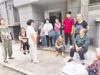 和工作人员研究工作,就老旧小区改造征求居民意见,解答居民问题……