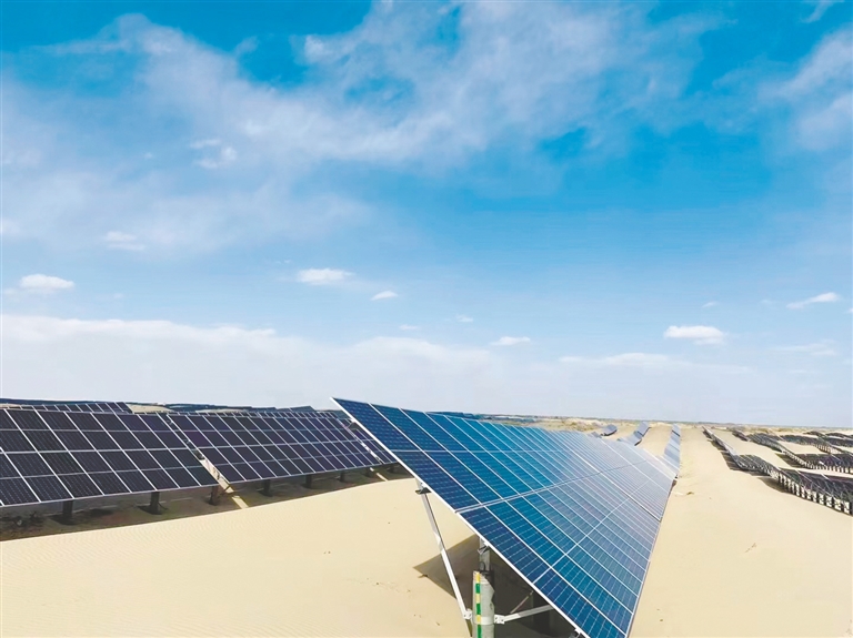 建行内蒙古分行支持中电投东北新能源有限公司在赤峰市敖汉旗的光伏治沙项目,为践行双碳理念作出生动实践。
