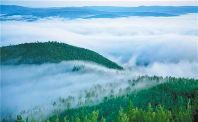 云雾弥漫山谷,它是茫茫大海;云雾遮挡山峰,它是巨大天幕。连日来,内蒙古大兴安岭阿里河灵云山风景区阴雨绵绵,云雾从峰谷间缓缓升腾漂浮,环绕群峰,一会儿升腾,一会儿翻滚,如慢镜头中大海的汹涛,宛若仙境,又如一幅精美绝伦的水墨山水画,美不胜收。