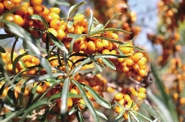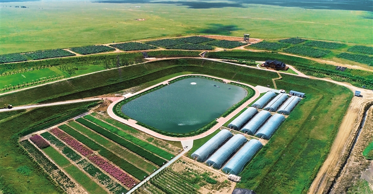 记者了解到,目前,东明露天矿生态修复示范区以水土保持、经济性作物和景观再造为主抓手,已建成植被群落稳定的30万株沙棘生态作业区、420亩的牧草(苜蓿)生态修复区、年产3万余斤的生态农业采摘区、多个乔灌木花卉植被群落景观区和集灌溉、鱼类养殖、景观效果为一体总容积约15万m3的蓄水池,成为名副其实的草原矿山“公园”。