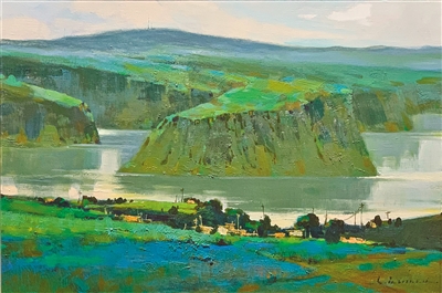 内蒙古是黄河的主要流经省区,内蒙古各族人民对黄河有着深厚的感情。在此次画展中有众多描绘黄河的作品。如敖恩的油画《黄河太极湾》《太极湾初夏》、易晶的油画《黄河太极湾》、董从民的油画《写生黄河》、王耀中的油画《渐远的烽火台》、王虎镛的油画《千回百转》、路宾的油画《黄河系列》、王成俊的油画《准格尔黄河风景》、梁昱的油画《寂静的河谷》、李秉军的油画《龙口黄河畔》等。多数画家通过现场写生,表现了黄河内蒙古段不同时空下的独特风采。敖恩笔下的太极湾视野开阔,纯朴自然;易晶笔下的太极湾山清水秀,黄河安澜;董从民的黄河写生感觉鲜活,风格朴素;王虎镛笔下的黄河千回百转,奔流不息;路宾笔下的黄河水流湍急,蔚为大观;而王耀中的《渐远的烽火台》则把黄河与长城同框,传递出久远而沧桑的历史感。