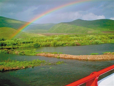 牙克石市博克图镇,青山新雨,彩虹跨河,赏心悦目。 文/图 郑广鑫
