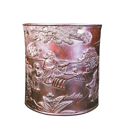 孔子的弟子很多,最大者比孔子小4岁,最小者比孔子小53岁。笔筒上孔子的弟子们尽管都是宽衣舒袖,但是繁简不同,说明弟子们的经济状况不一样,体现了孔子“有教无类”的教学主张,不分贵族与平民,只要有心向学,都可以入学受教。诗人王安石赞美孔子是中华圣哲大道的集大成者:“圣人道大能亦博,学者所得皆秋毫。”