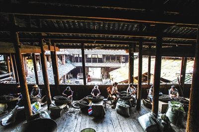 9月5日,益阳市安化县东坪镇黄沙坪的老字号永泰福茶号内,一派热火朝天的景象。工人们正抓紧生产精心研制的特种茶——“虎皮圆茶”(又名“虎皮寸金”),这是一种紧压黑茶,用七星灶全火焙制,烘焙好后用压制茯砖茶的手法人工制作,程度为焦而不糊,口感纯正,汤色油亮金黄如桐油。