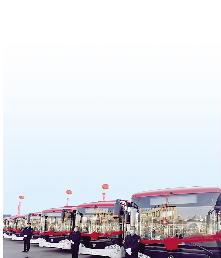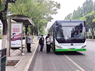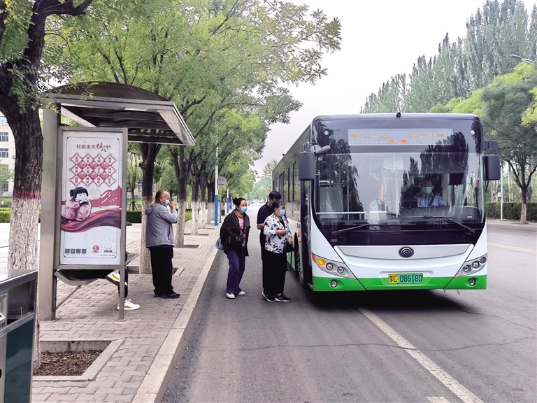 近日,在乌海市街头,一辆辆白绿相间的新能源公交车纷纷换上“新衣”,伴随着悦耳的报站声,缓缓驶向停靠站台。