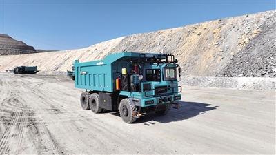 “注意保持速度,记录好相关数据。”腾远煤矿总经理张衡站在采场指挥台上对身边的技术人员说。技术人员捧着一个笔记本电脑,无人驾驶所有数据模块都在其中,电脑已设定好程序,重卡按照设定的程序运行,装满煤后,会沿着设定的路线驶到规定的地点卸载,然后重复进行。