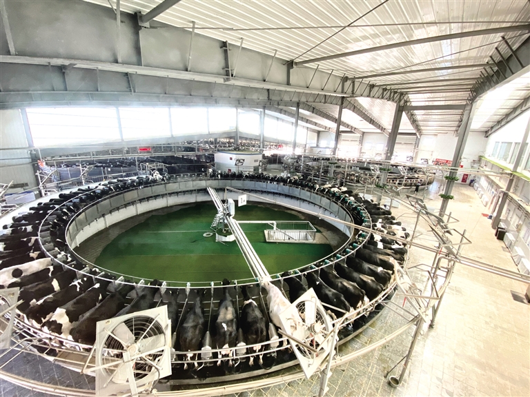 畜牧业是呼伦贝尔传统产业,近年来,呼伦贝尔市加快畜牧业现代化发展,把稳产保供的着力点放在绿色优质产品供给上,把稳产增产的出路放在全面提升科技创新能力上,大力实施“稳羊增牛”,优化畜种畜群结构,推动种养加结合、草畜一体化建设,提高标准化、规模化养殖水平,巩固提升畜牧产能,畜牧生产保持稳中有升。2021年,全市牲畜存栏达到1100万头只,肉类和牛奶产量分别达到23万吨和70万吨,已成为全区肉库、奶罐的重要组成部分。与此同时,呼伦贝尔抢抓机遇,科学谋划,聚焦奶源基地建设、龙头企业培育、地方特色奶制品打造,制定出台“奶七条”政策措施,构建“1+3+3”政策体系,全面推进奶业振兴,不断提高奶业现代化水平,规划建设13个规模养殖场,目前养殖规模达4.14万头,日产鲜奶500吨。伊利高端有机乳制品一期项目9条生产线全部建成并投产运营,日加工产能达到660吨。