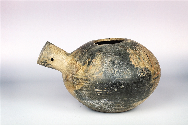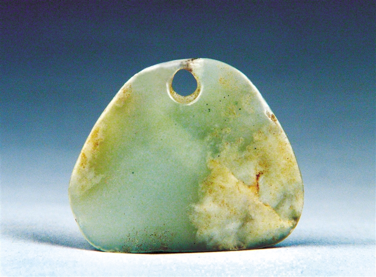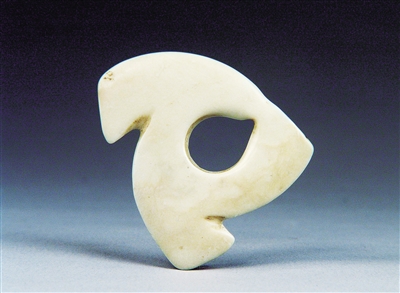 扎鲁特旗南宝力皋吐博物馆馆长刘志强介绍,遗址出土有精美的玉璧、玉璜、刺猬形陶器,以及“人”形孕妇陶壶等。既有石刀、骨锥、纺轮等生产工具,也有五角星形石器、冠饰等礼仪用品。五角星形石器呈黑色,煤晶石质地,在上面以浮雕的形式叠加了一个小的五角星,小五角星的尖角正对着大五角星两个尖角之间,两个五角星的中心是圆形的孔,可以装木柄,这很可能是类似于权杖头之类的礼仪用品。