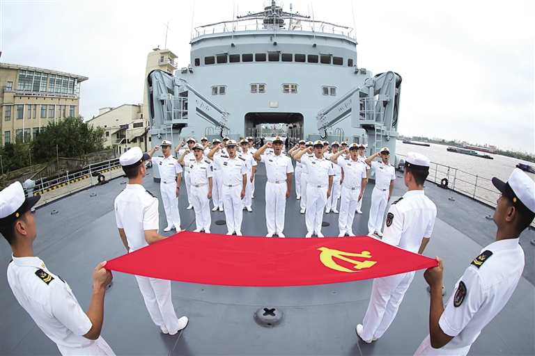 9月30日,东部战区海军某登陆舰大队徂徕山舰在烈士纪念日组织官兵重温入党誓词。9月30日是第9个烈士纪念日,解放军和武警部队连日来以多种形式开展纪念活动,缅怀先烈铭记历史,激励官兵岗位建功、矢志强军。